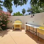 The villa is equipped with a fridge for self-catering in an outdoor dining area and a place for dining.